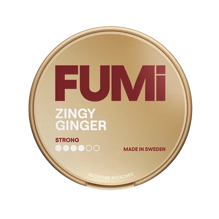 FUMI Zingy Ginger Strong is an all-white nicotine pouch in a slim format by Helix Sweden. Completely tobacco-free yet nicotine-containing, it suits moderate users who prefer a 8mg profile.